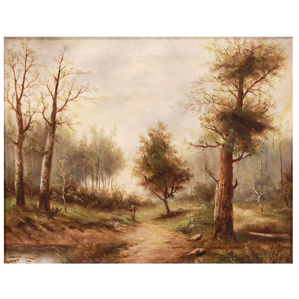 Pittore europeo - "Paesaggio", olio su tela, entro cornice in legno dorato, firmato in basso a sinistra - 40,5x51 cm. -