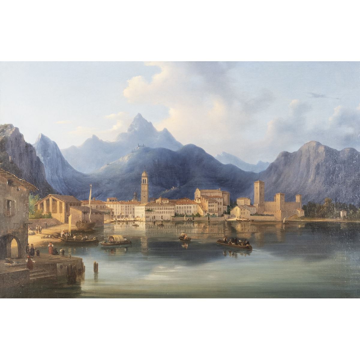 Scuola Tedesca - "Riva del Garda", olio su tela, entro cornice - 56,5x81,5 cm. -