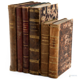 Lotto di sei volumi del XIX secolo, (umidità, gore, difetti)