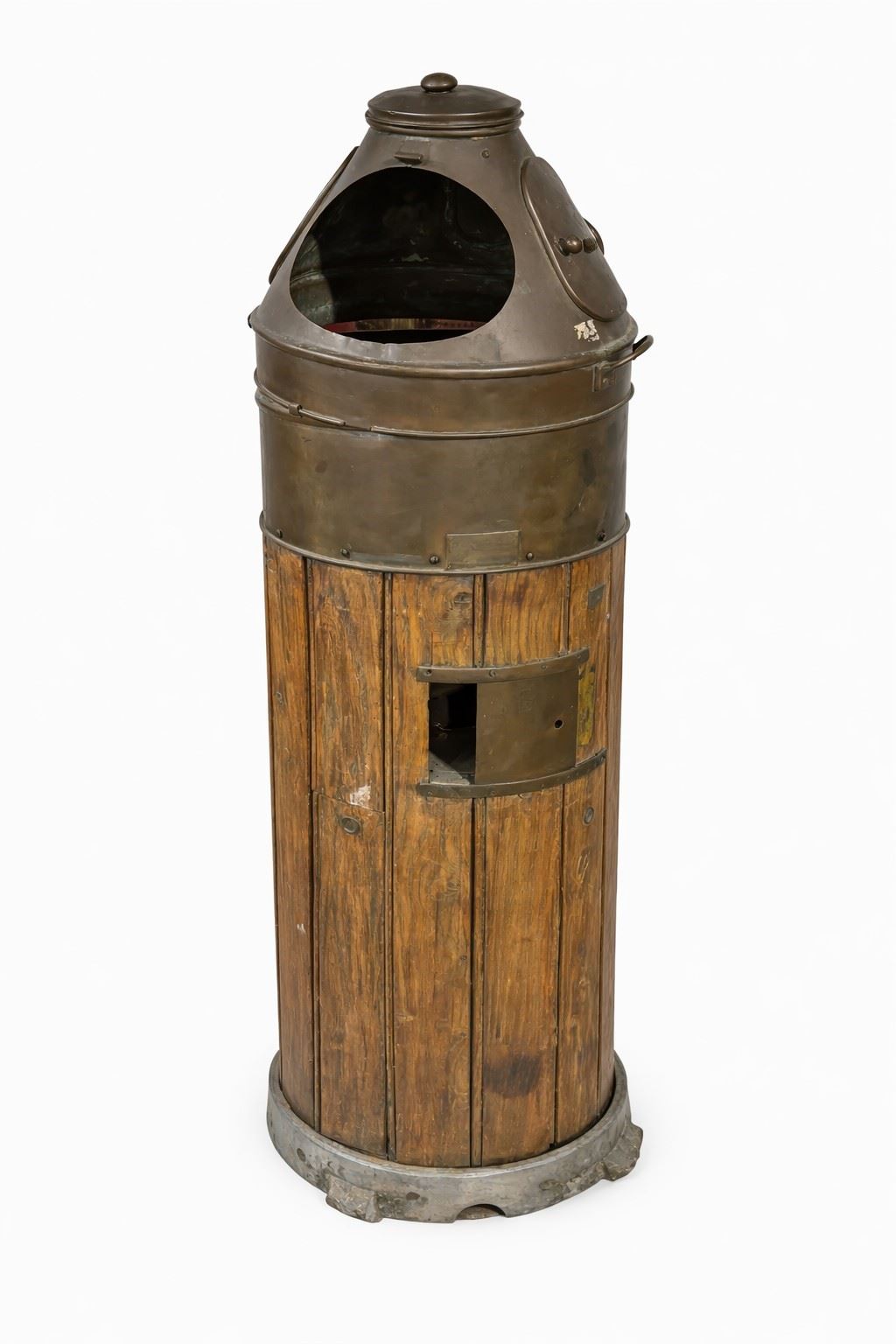 • Lot n° 0257 Chiesuola nautica con bussola - imponente chiesuola a colonna, in struttura lignea a doghe con cappello superiore in metallo sagomato e aperture di lettura, dotata di bussola interna - h 145 cm - Legno e metallo