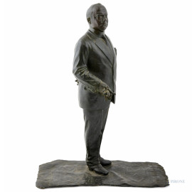 Uomo con guanti, XX secolo, scultura in bronzo, altezza cm 46