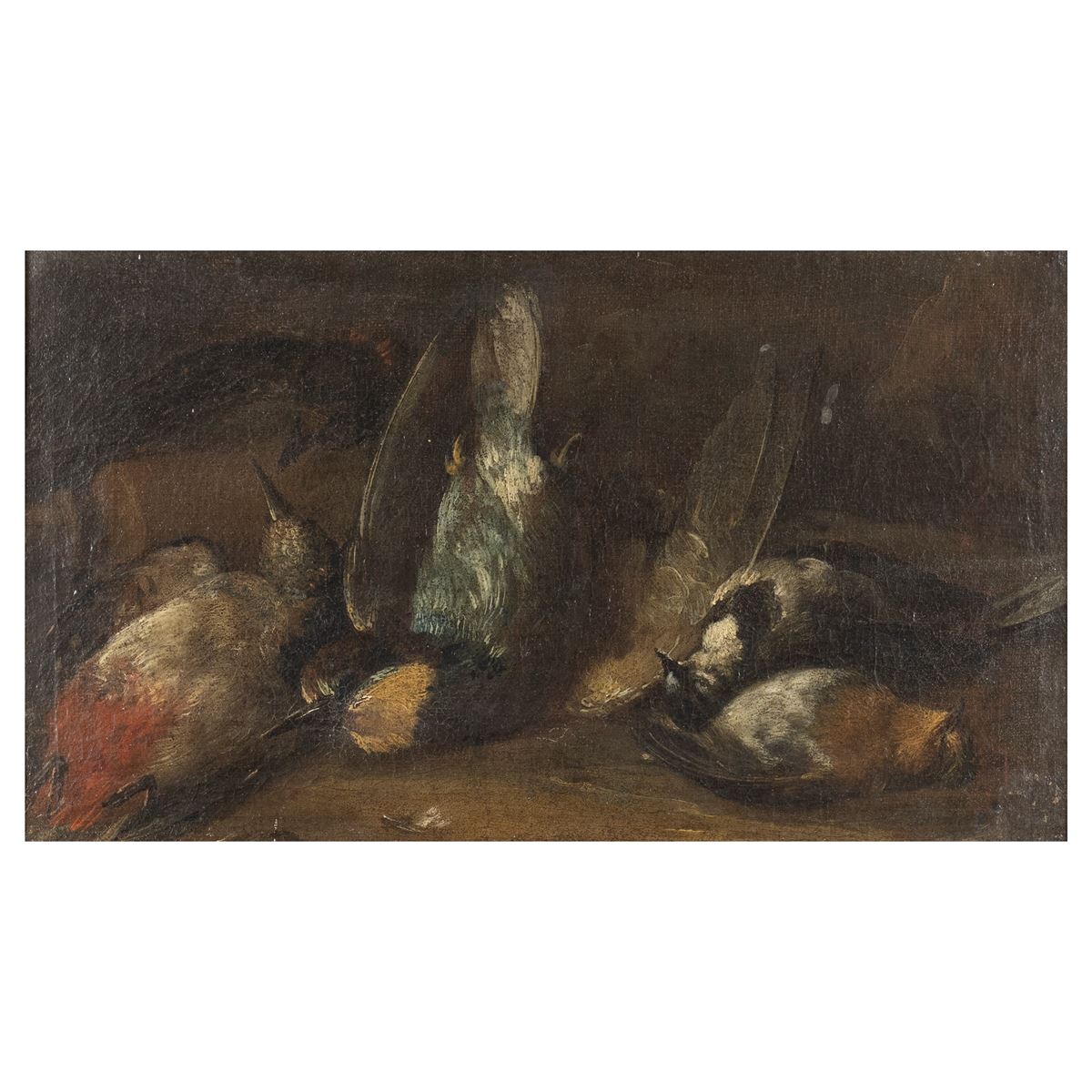 Scuola Italiana - "Natura morta con cacciagione", olio su tela, entro cornice - 21x36 cm. -