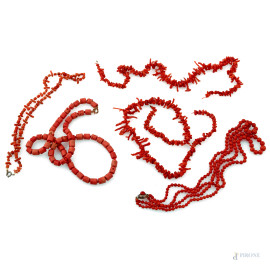 • Lot n° 0048 Lotto di cinque collane di bigiotteria, lunghezza massima cm 55, (segni di usura)