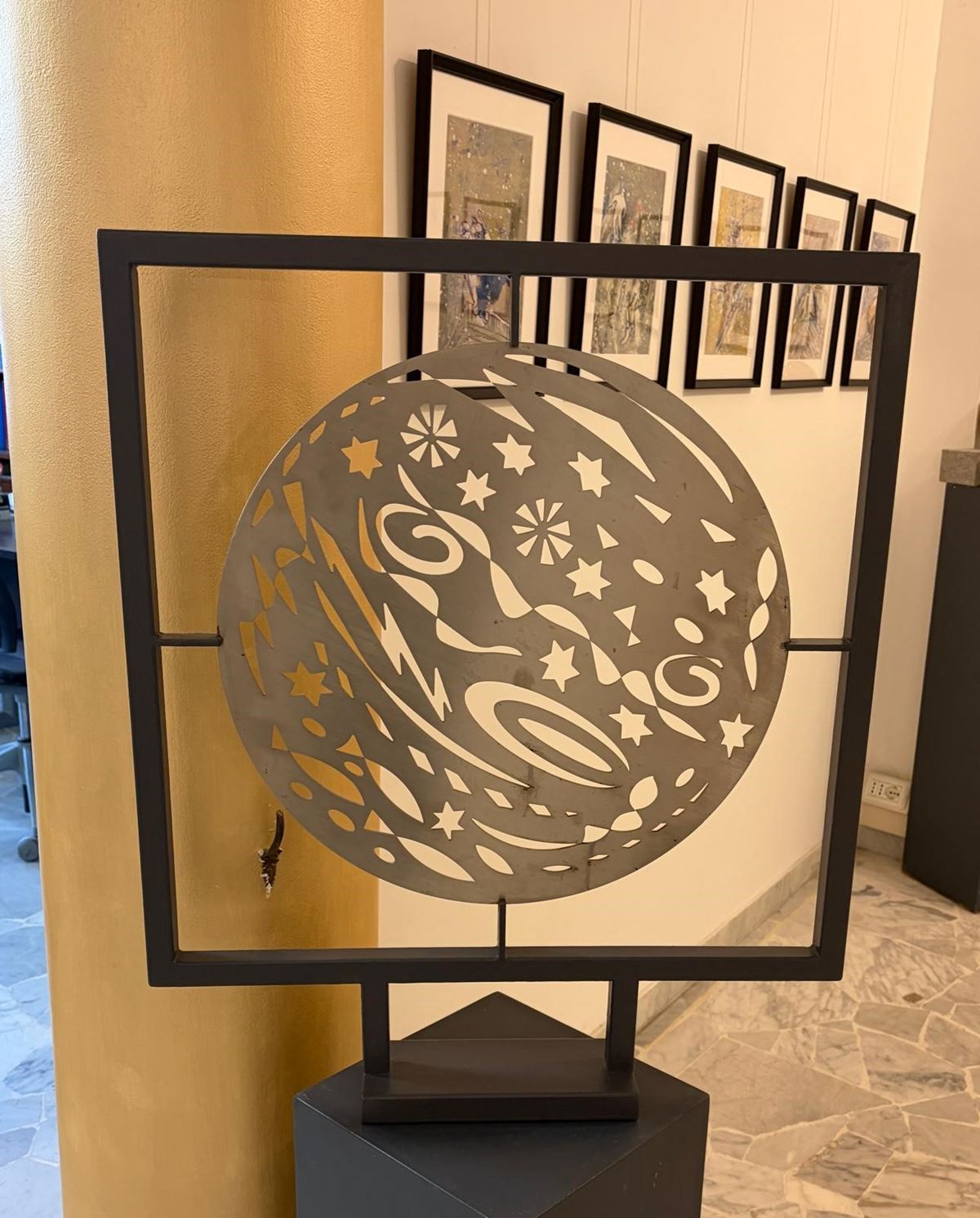 • Lot n° 0039 Scultura mod. Notte di San Lorenzo - Scultura modello Notte di San Lorenzo in acciaio satinato montato su struttura in acciaio. Prototipo per la scultura installata nei giardini del Museo agli Eremitani di Padova. - 78x65x10 cm ca. -