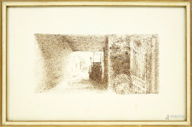 • Lot n° 0876 Senza titolo, china su carta, cm 20,5x32,5, firmato, entro cornice.