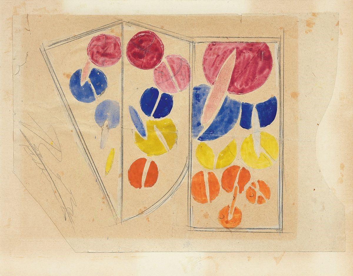 • Lot n° 0584 Progetto per paravento - Firma sul lato sinistro: Balla / Futurista; su un cartone al verso della cornice: scritta di Luce Balla "Giacomo Balla / Bozzetto per paravento - 1916": etichetta di Casa Balla, con n. 767: etichetta Galleria Edieuropa QUIarte Contemporanea, Roma, con n. 47. - cm 21x27 - Tecnica mista su carta applicata su cartone