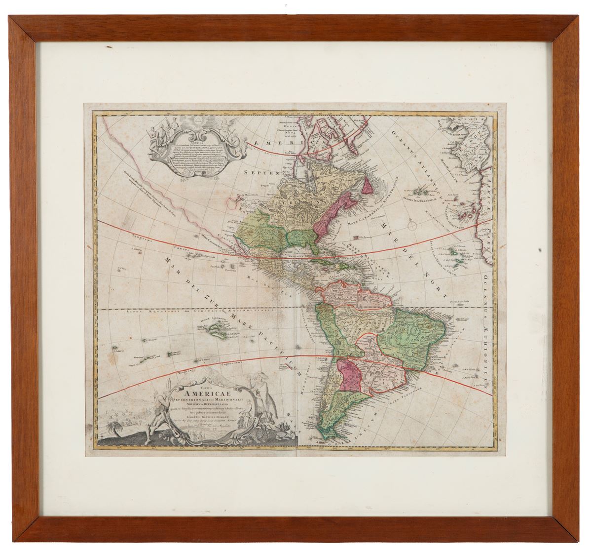 • Lot n° 0325 Carta geografica "AMERICA" - Carta geografica acquarellata raffigurante "AMERICA". In cornice. Lievi difetti. - 53,5x63 cm ca. -