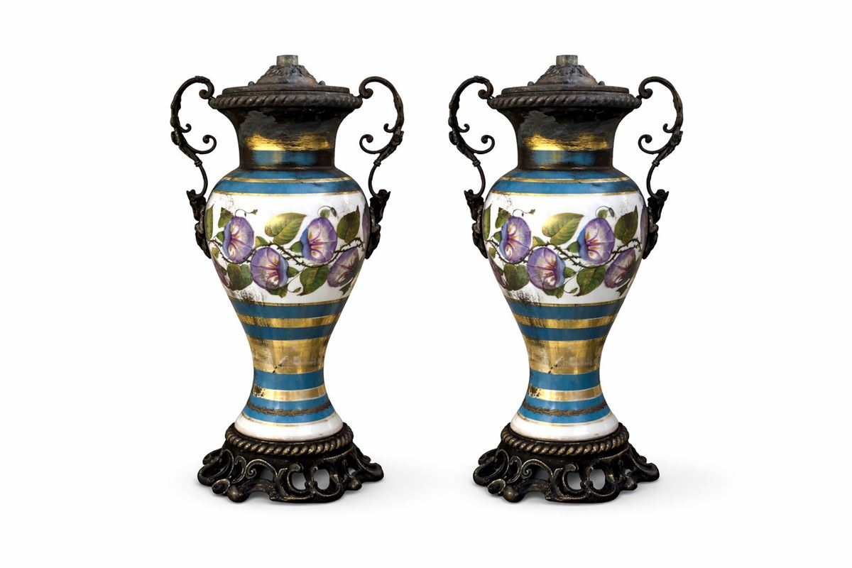 Coppia di vasi in porcellana policroma, adattati a lampada - I lotti oggetto della presente asta sono ubicati presso un’abitazione privata sita in Roma.La partecipazione all’asta implica la piena accettazione della condizione secondo cui il ritiro dei beni aggiudicati sarà interamente a cura, rischio e spese dell’aggiudicatario.Resta inteso che eventuali operazioni di smontaggio, imballaggio, trasporto e ritiro dovranno essere organizzate direttamente dall’aggiudicatario.Si raccomanda pertanto di richiedere preventivamente tutte le informazioni necessarie, anche al fine di acquisire eventuali preventivi per il trasporto prima di formulare un’offerta. - 58 x 15 cm -