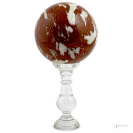 • Lot n° 0581 Sfera in marmo su base in plexiglass, XX secolo, diametro cm 13 ca., altezza complessiva cm 15