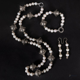 • Lot n° 0098 Parure con perle e argento, lunghezza collana cm 68; lunghezza bracciale cm 20