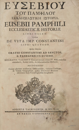 • Lot n° 0461 Eusebii Pamphili Ecclesiasticae Historiae Libri Decem, libri quartuor[…], 1746, (difetti, strappi, gore, umidità)