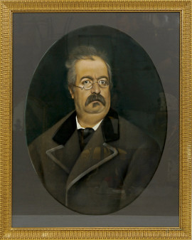 • Lot n° 0502 Ritratto di uomo con occhiali, pastello su cartoncino in assetto ovale, XX secolo, cm 75x50, entro cornice