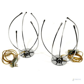 • Lot n° 0552 Coppia di lampade da tavolo in acciaio cromato prod. Sforzin Illuminazione, altezza cm 42, (segni di usura, da revisionare)