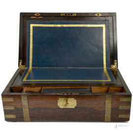 Scrittoio da viaggio in mogano, inizi del XX secolo, misura della scatola aperta cm 52x45,5, (difetti)