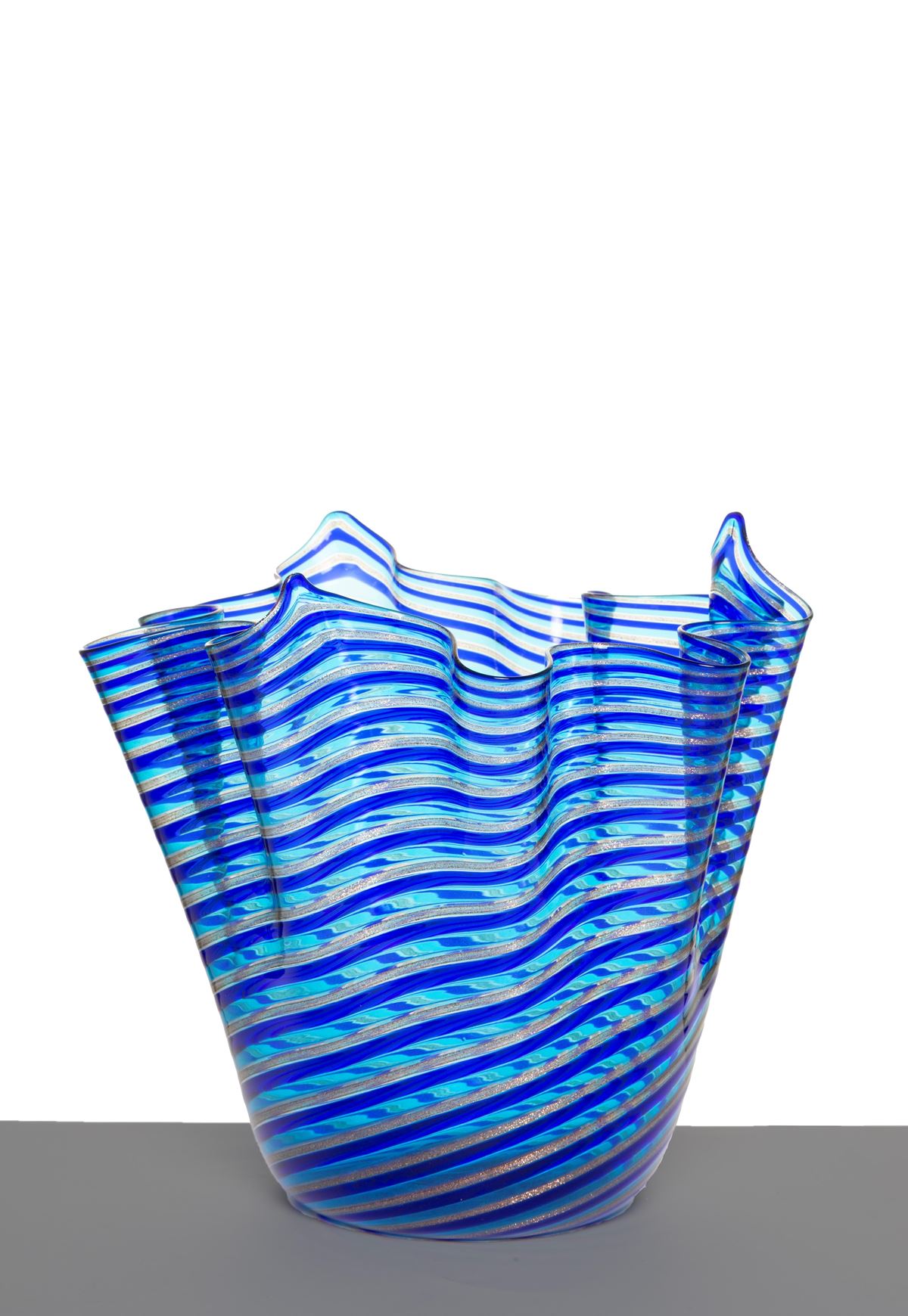 • Lot n° 0439 Vaso Fazzoletto a canne. VENINI - Vaso Fazzoletto a canne in vetro blu. Produzione VENINI. - Alt. 21 cm ca. -