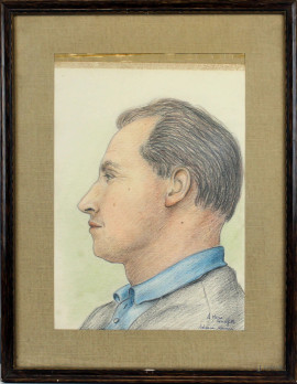 Profilo d'uomo, tecnica mista su carta, cm 33x23, firmato, entro cornice