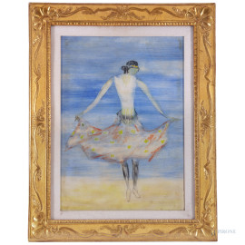 • Lot n° 0023 Giovanni Omiccioli (1907 - 1975), Ballerina, XX secolo tecnica mista su compensato, cm 88x63, firmato e datato "1954" al retro, entro cornice