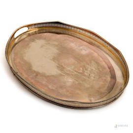 Grande vassoio in metallo argentato di forma ovale, cm 50x38