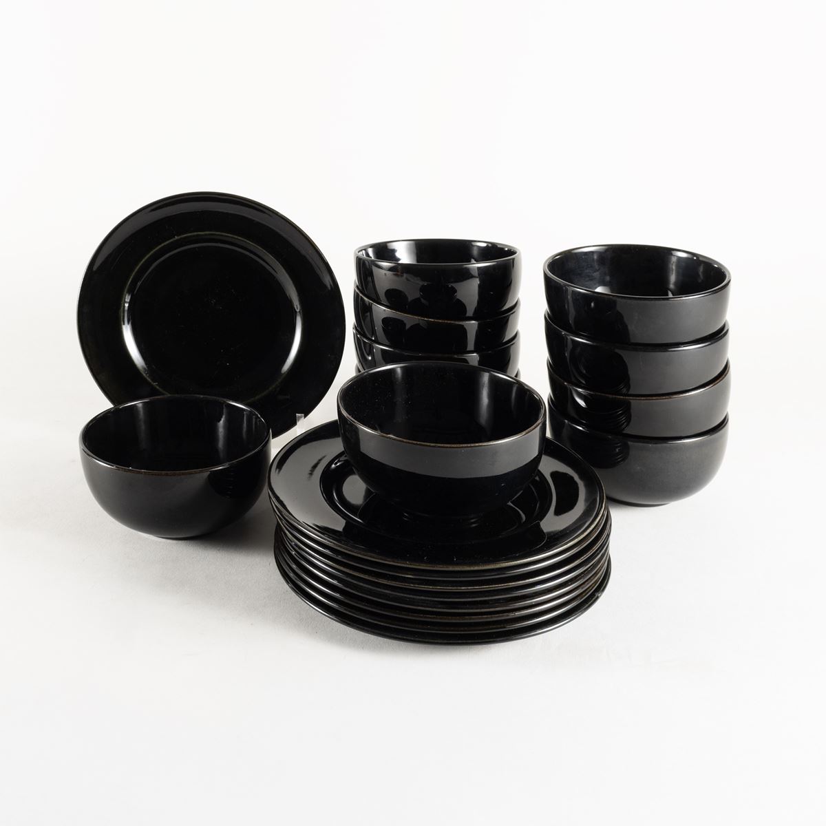 Prod. Richard Ginori - servizio da macedonia in ceramica smaltata, marchio della produzione, lievi difetti.Composto da:10 coppette: 6x11 cm.9 piatti da dolce: d. 18,5 cm. - -