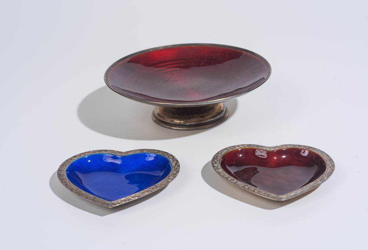 Tre piattini in argento 925 - Peso lordo: 343 gr. I lotti oggetto della presente asta sono ubicati presso un’abitazione privata sita in Roma.La partecipazione all’asta implica la piena accettazione della condizione secondo cui il ritiro dei beni aggiudicati sarà interamente a cura, rischio e spese dell’aggiudicatario.Resta inteso che eventuali operazioni di smontaggio, imballaggio, trasporto e ritiro dovranno essere organizzate direttamente dall’aggiudicatario.Si raccomanda pertanto di richiedere preventivamente tutte le informazioni necessarie, anche al fine di acquisire eventuali preventivi per il trasporto prima di formulare un’offerta. - Diametro: 13 cm -