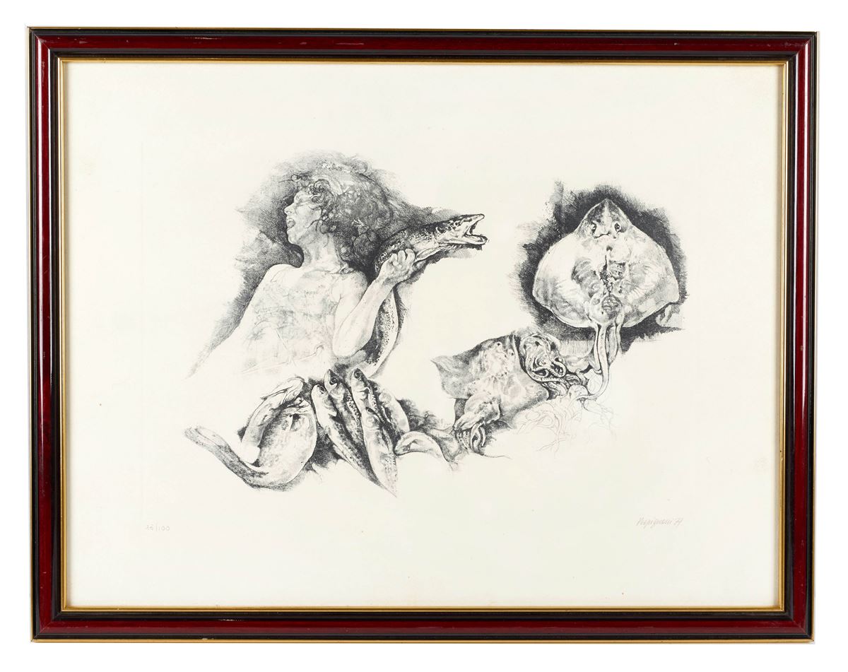 "Senza titolo" - RENZO VESPIGNANI (Roma 1924 - Roma 2001) "Senza titolo", 1979. Litografia a colori su carta. Cm 45x60. Opera firmata e datata in basso a destra Vespignani 79. Reca numeri di tiratura in basso a sinistra 15/100. - Cm 45x60 - Litografia a colori su carta