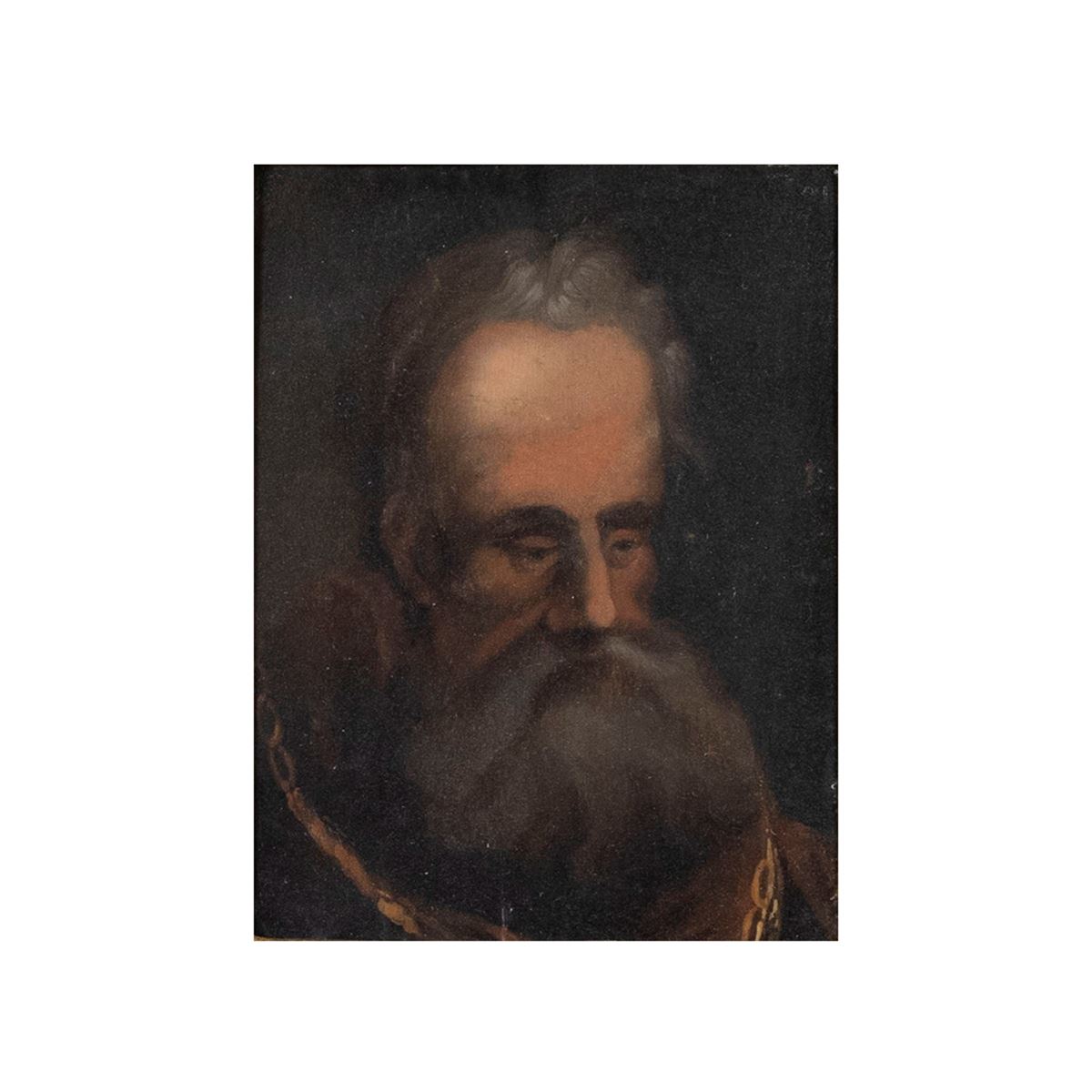 Pittore italiano - "Ritratto di uomo anziano con barba", olio su tavola, entro cornice - 13,8x10,5 cm. -