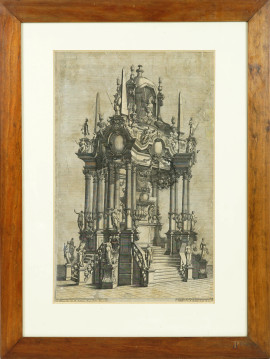 Altare, da Giuseppe Galli da Bibbiena (1696-1757), incisore Johann Andreas Pfeffel (1715-1768), cm 64x46,5, entro cornice (difetti e restauri)