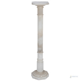Colonnina in alabastro a fusto liscio, XX secolo, altezza cm 98,5, (segni di usura, graffi e lievi scalfiture)
