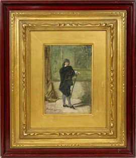 Ritratto di giovane con la spada, olio su cartone, firmato in basso a sinistra A. Cassioli, cm 19,7x14, entro cornice