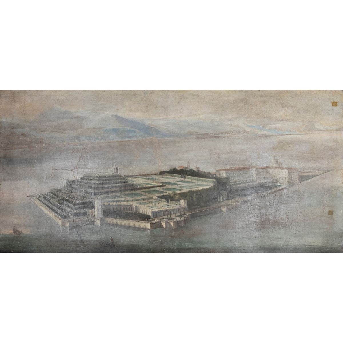 • Lot n° 0163 Pittore attivo nell'Italia settentrionale - "L'isola Bella sul lago Maggiore", olio su tela, entro cornice - 74x152 cm. -