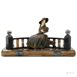 • Lot n° 0046 Elemento decorativo da tavolo in marmo e materiali vari raffigurante gentildonna su una balconata, XX secolo, cm 26,5x50x14, (scalfiture, difetti, graffi, segni di usura)