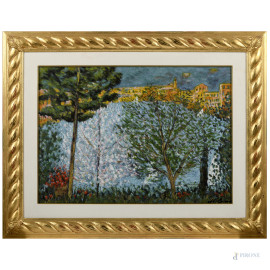 • Lot n° 0344 Michele Cascella (1892 – 1989), Portofino, 1984, serigrafia e litografia a 32 passaggi di colore, esemplare I/C, cm 50,5x70,5, firmato in basso, entro cornice