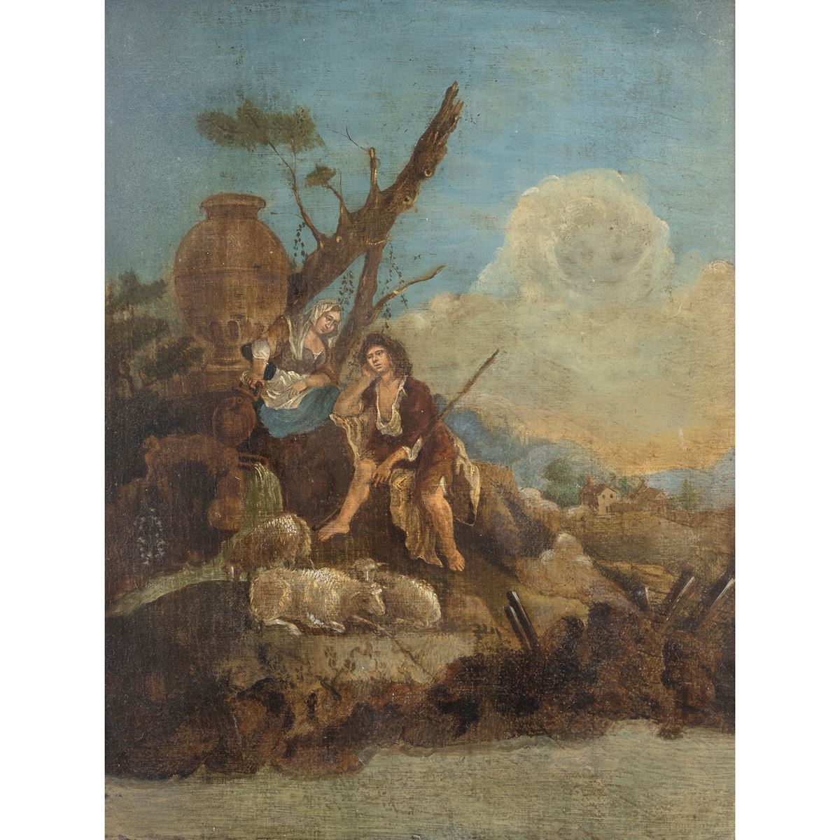 Pittore francese - "Scena bucolica", olio su tavola, entro cornice - 46,5x36 cm. -