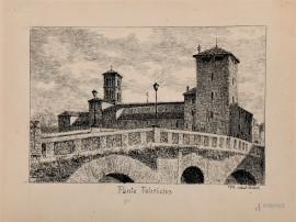 Ponte Fabricius, XIX-XX secolo, china su carta, cm 215x28, firmato e datato "Bozzoli 1929"