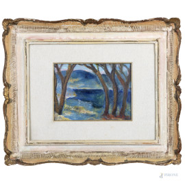 Henrietta Mabel May (1877-1971), Paesaggio con alberi, olio su cartoncino, cm 21,5x28,5, entro cornice