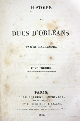 • Lot n° 0684 Histoire des Ducs d'Orleans par M. Laurentie, 4 voll., Parigi 1832/1834 (difetti e tracce d'umidità).