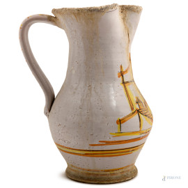 Versatoio in terracotta smaltata e dipinta a fondo bianco raffigurante chiesa, XX secolo, iscritto "A. Madonna Cerreto", altezza cm 26,5, (difetti di cottura, cadute di smalto stannifero),
