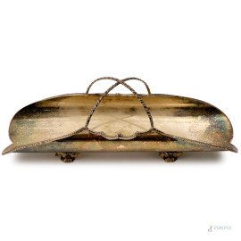 • Lot n° 0231 Portagrissini in argento pggiante su quattro piedini lavorati a cesello, XX secolo, cm 9,5x24,5x8, gr. 230