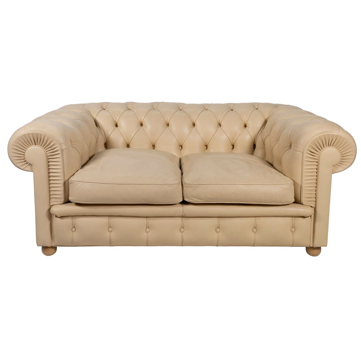 Prod. Poltrona Frau - divano a due posti mod. Chester in pelle avorio, etichetta della produzione, segni di usura - 67x150x80 cm. -