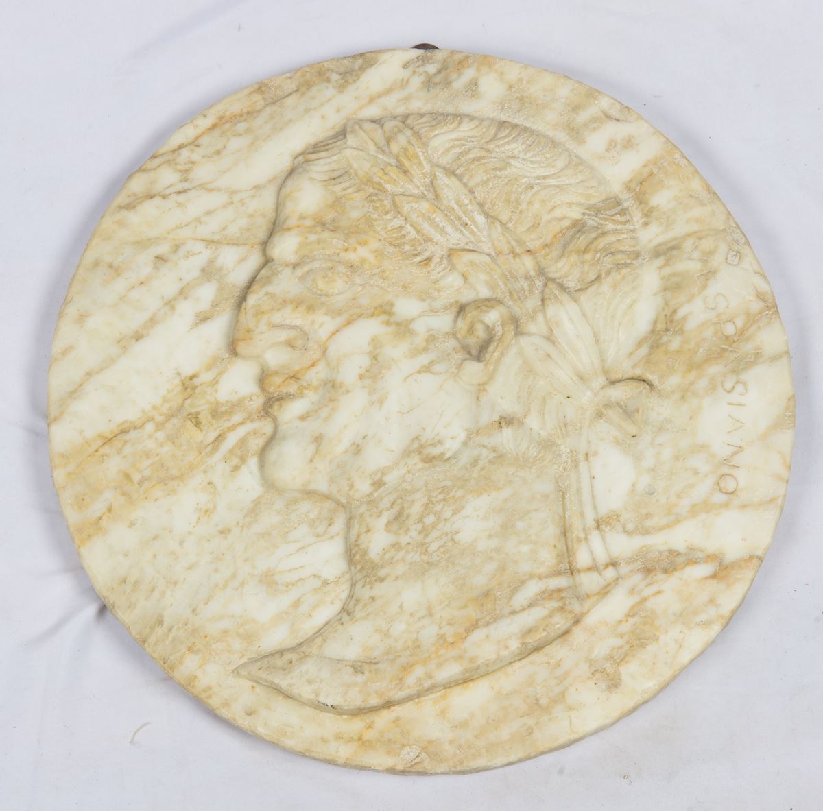 • Lot n° 0127 Medaglione - Di forma circolare. Scolpito a bassorilievo, raffigurante profilo di Vespasiano - diametro: 49 cm - marmo bianco calacatta