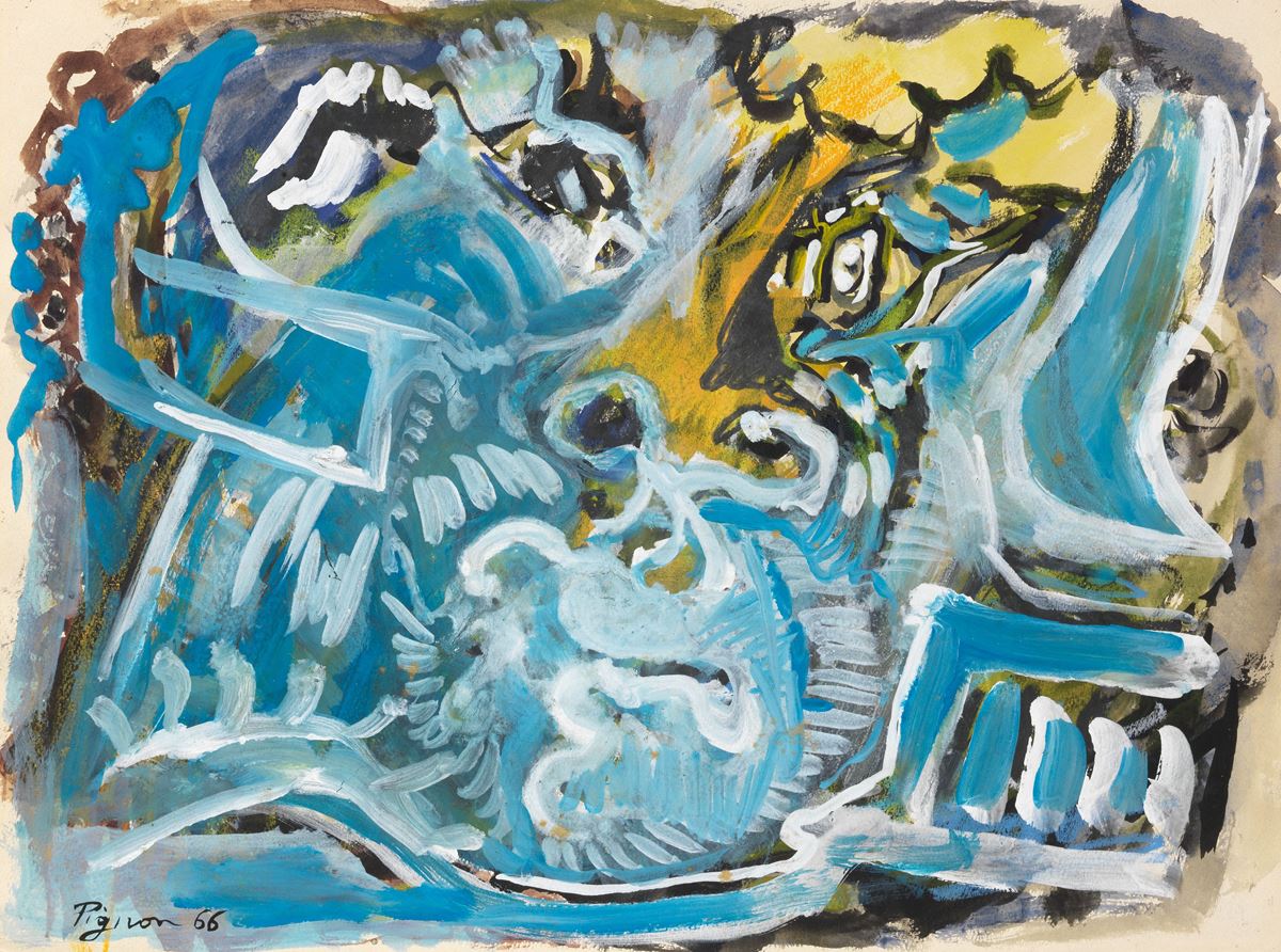 • Lot n° 0598 Composizione - Firma e data in basso a sinistra: Pignon 66. - cm 31,7x41,8 - Tecnica mista su carta
