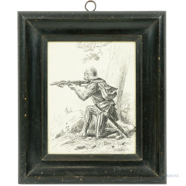 Balestriere, china su carta applicata su cartoncino, firmato in basso "E. van Muyden", cm 16,5x13,5, entro cornice