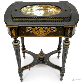 Tavolinetto fioriera in legno ebanizzato, XIX secolo, cm 78x60x38