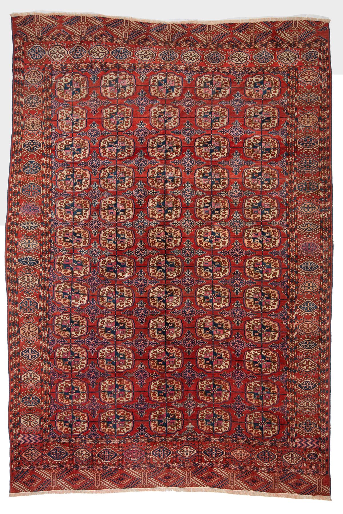 • Lot n° 0315 Tappeto Tekkè. Turkestan Occidentale - Tappeto Tekkè. Turkestan Occidentale. Prima metà del XX secolo. Eccellente stato di conservazione, campo in vello, senza restauri o aree consumate. - 300x200 cm ca. -