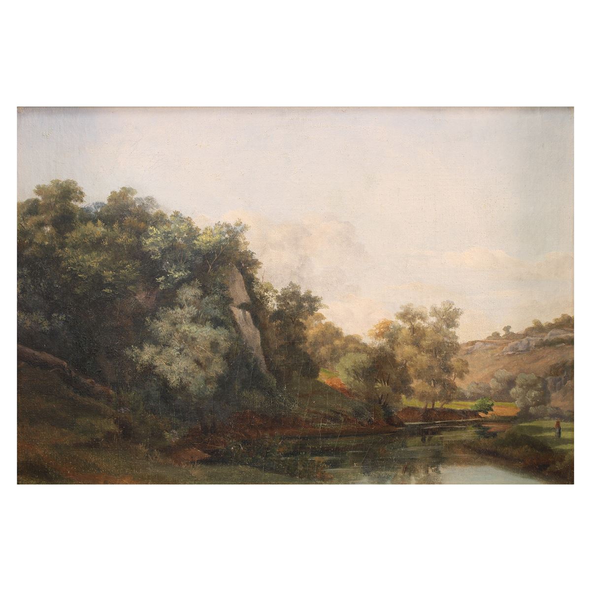 • Lot n° 0177 Pittore europeo - "Paesaggio con personaggi", olio su tela, entro cornice - 30x45 cm. -