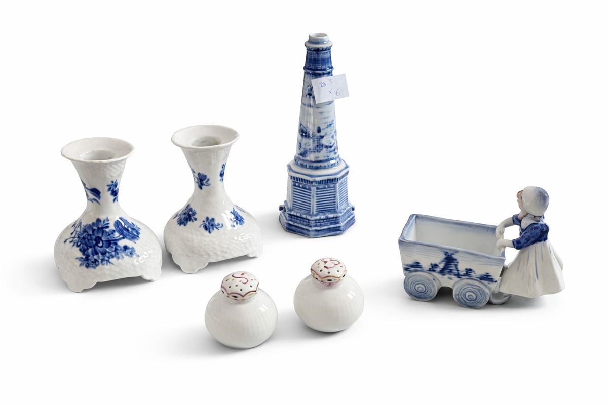 Set di porcellane - Porcellana di Delf, portacandele Royal Copenhagen, sale e pepe.I lotti oggetto della presente asta sono ubicati presso un’abitazione privata sita in Roma.La partecipazione all’asta implica la piena accettazione della condizione secondo cui il ritiro dei beni aggiudicati sarà interamente a cura, rischio e spese dell’aggiudicatario.Resta inteso che eventuali operazioni di smontaggio, imballaggio, trasporto e ritiro dovranno essere organizzate direttamente dall’aggiudicatario.Si raccomanda pertanto di richiedere preventivamente tutte le informazioni necessarie, anche al fine di acquisire eventuali preventivi per il trasporto prima di formulare un’offerta. - -