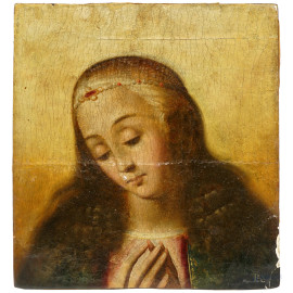 • Lot n° 0064 Vergine, XVII secolo, olio su tavola, cm 44x39,5 (difetti)
