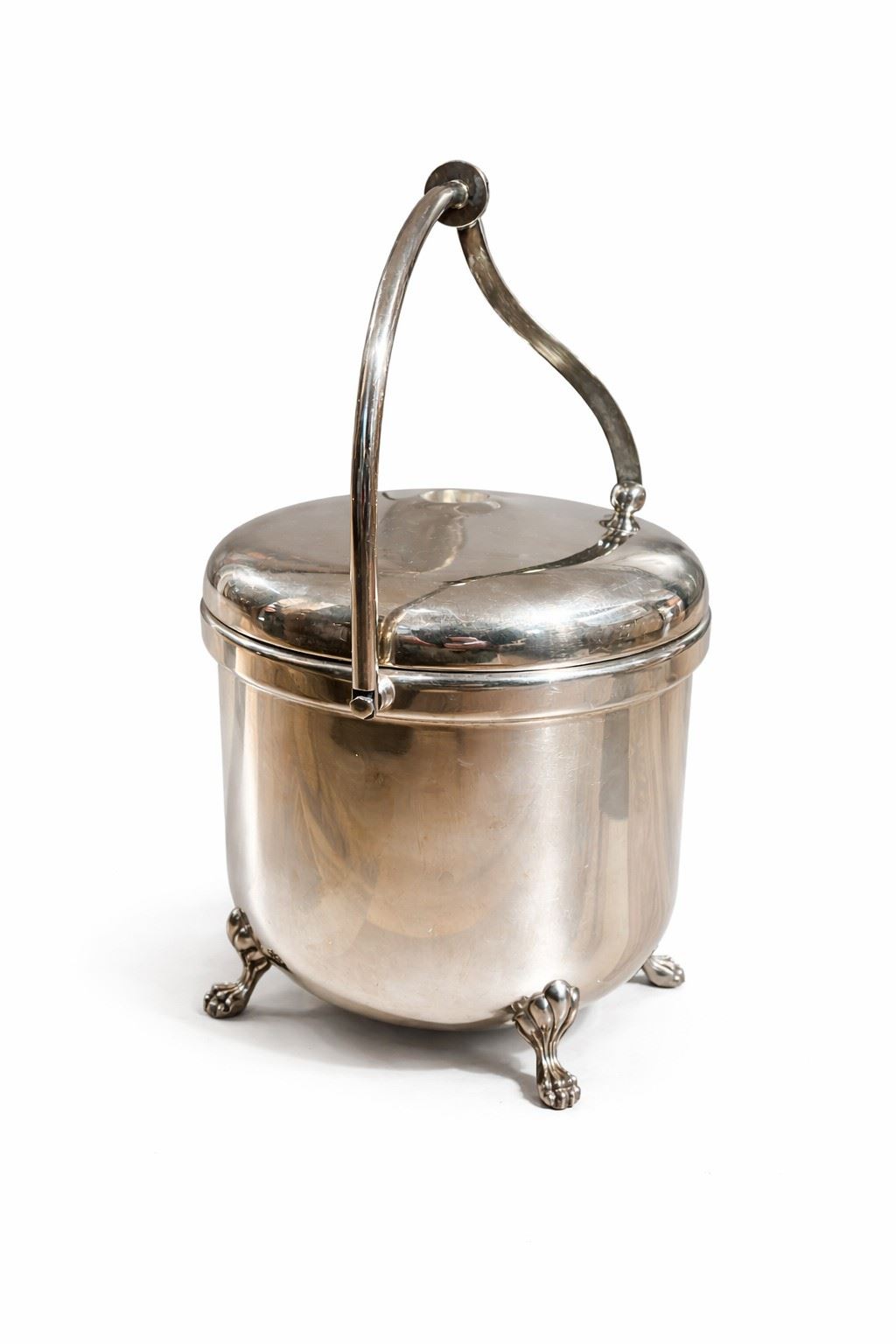 Secchiello in metallo argentato - con piedini ferini e pinza interna - 32 x 21 cm -