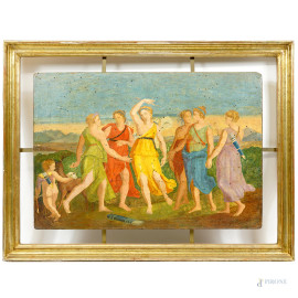 Diana e le ninfe, XIX-XX secolo, olio su tavola, cm 38,5x56, entro cornice