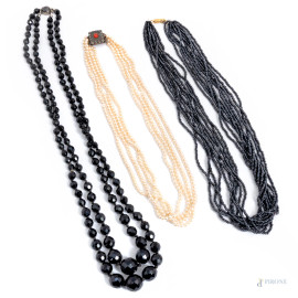 • Lot n° 0041 Lotto di tre collane di bigiotteria, lunghezza massima cm 60 (segni di usura)